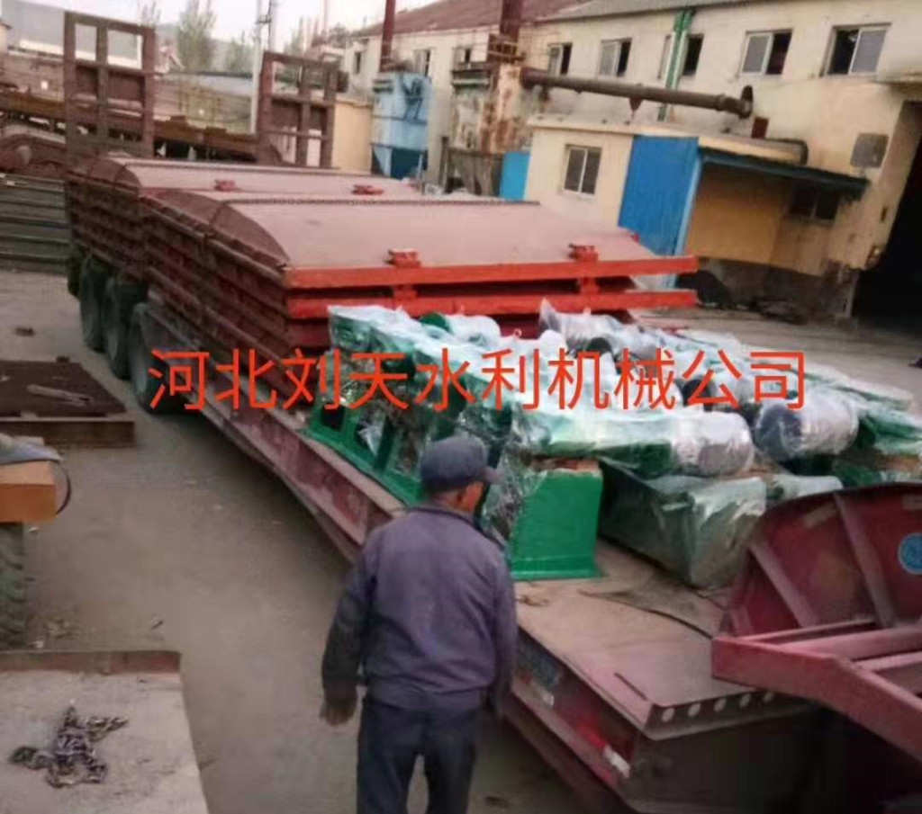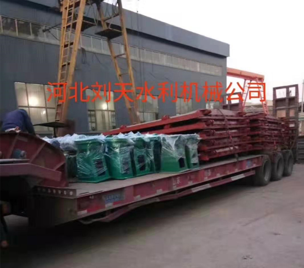 3x2.5米鑄鐵鑲銅閘門,2x10噸直連螺桿啟閉機整車發貨山東省青島市