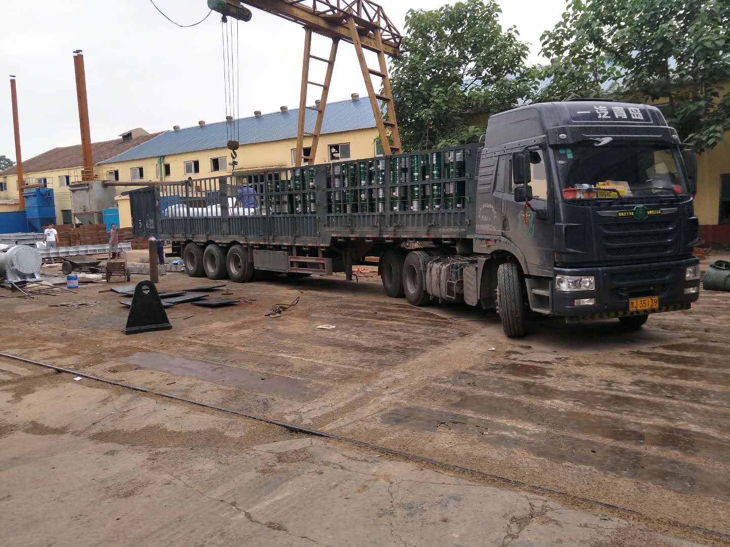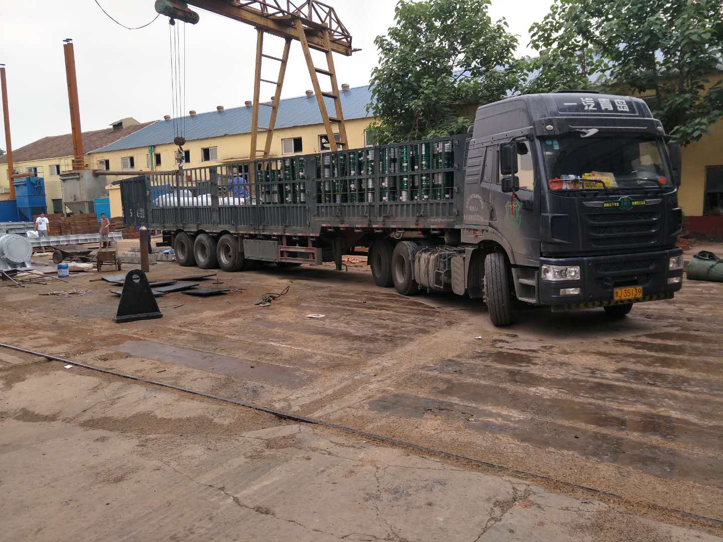 30米不銹鋼鋼壩液壓啟閉機發(fā)貨第一車冒雨出發(fā)直達海口