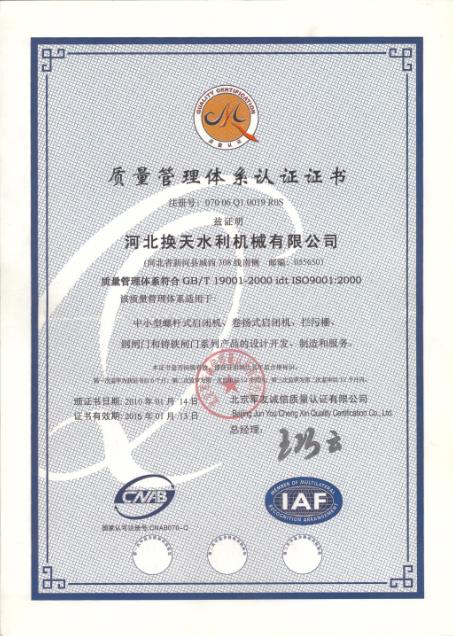 • 換天質量管理體系認證證書