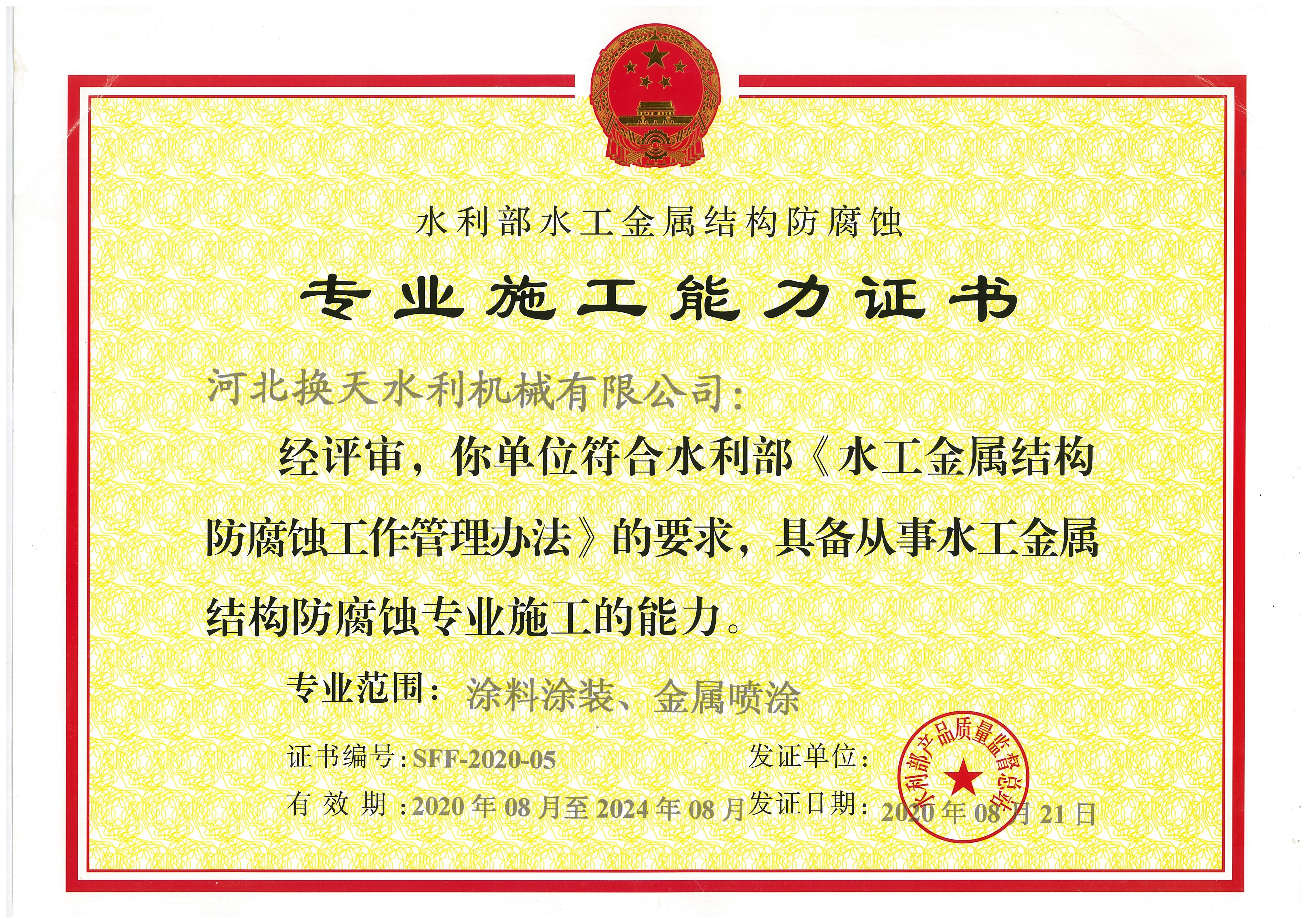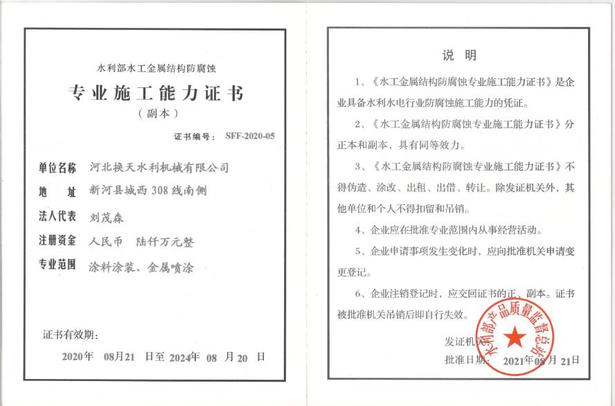 • 水利專業施工能力證書
